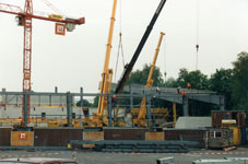 Konzept Die alte Kunsteisbahn in Wetzikon, welche aus einer Halle und einem ungedeckten Ausseneisfeld be-stand, musste mit einem Minimal-Budget in eine Doppel-Eishalle umgebaut werden. Obwohl sozusa-gen die ganze Bausubstanz abgebrochen wurde, mussten innerhalb eines halben Jahres (zwischen zwei Eis-Saisons) die Bauarbeiten realisiert werden. Es entstand eine Doppelhalle mit polysportiven Mö-glichkeiten und einem massiv vergrössertem Raum-programm für Betreiber, Sportler, Zuschauer und andere Benutzer. Die Hallen können selbstverständ-lich auch für Konzerte, Ausstellungen, Inlineskating, wie auch für sonstige Hallensportarten genutzt wer-den. In dem nun vielfach vergrösserten Raumvolu-men sind viele zukünftige Ausbauwünsche realisier-bar. Ein wesentlicher Bestandteil der Planung war daher, dass der Wandel der gesellschaftlichen Be-dürfnisse berücksichtigt wurde und dass der daraus resultierende Raum- und Umstrukturierungsbedarf im Gesamtvolumen der Eishalle auch jederzeit realisiert werden kann. |