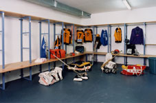 Sportbereich 1 Saison-Eisfeld 60.00 x 30.00m in Matchhalle 1 Ganzjahres-Eisfeld 60.00 x 30 .00m in Trainingshalle 6 Mannschaftsgarderoben 3 Duschräume für Mannschaftsgarderoben 3 Abtrocknungsräume für Mannschaftsgarderoben 3 WC-Räume für Mannschaftsgarderoben 1 Eiskunstlauf -Garderobe 1 Trainer- / Lehrer-Garderobe 2 Schiedsrichter-Garderoben 1 Garderobe oeffentlicher Eislauf 1 Sanitäts-Raum 1 Spielleiter-Büro 2 Materialräume 3 Disponibelräume frei unterteilbar im 1. OG |