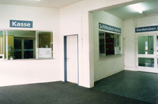 Öffentlichkeitsbereich 1 Haupteingang 1 Hauptkasse 1 Schlittschuhverleih 2 Matcheingänge 1 Raum für Matchkassen 1 Foyer 1 WC-Anlage Damen 1 WC-Anlage Herren 1 WC Anlage für Invalide 1 Restaurant mit Terrasse 1 WC-Anlage Damen und Herren im Restaurant 1 Wandelgang (Pausenraum) über Tribüne 1 Kiosk im Bereich Wandelgang 1 Sitzplatztribüne (Längsseite) mit 1050 Klappsitze 1 Stehplatztribüne mit 3000 Stehplätze